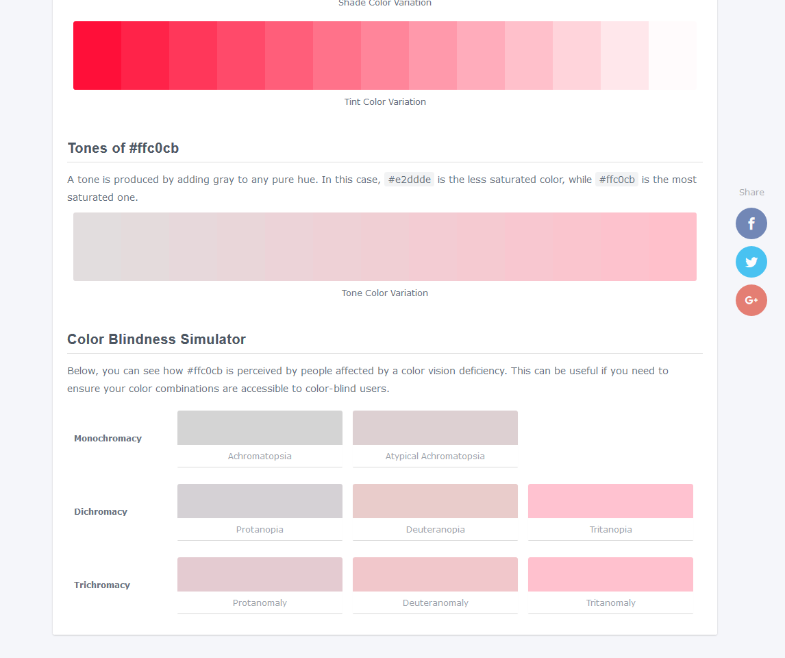 Na samym dole jest jeszcze istotna symulacja tego, jak wybrany przez nas kolor widzą osoby cierpiące na ślepotę barw, z podziałem na przeróżne rodzaje tego zaburzenia wzroku. To istotne przy dbaniu o przestępność naszego projektu.