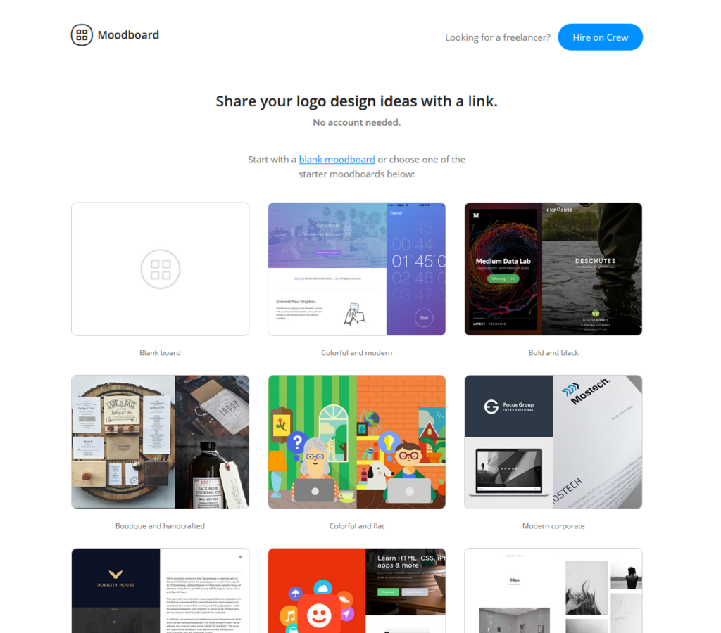 Jak można się domyślać, narzędzie o wiele mówiącej nazwie Moodboard służy właśnie do tworzenia takich miszmaszów. Założenia są proste: nie potrzeba konta czy subskrypcji, wystarczy zacząć od pustego pliku lub wybrać jeden z szablonów i rozpocząć wrzucanie.