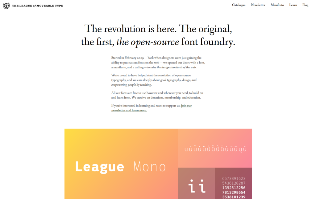 Nazwa „The League of Moveable Type” brzmi jak stowarzyszenie superbohaterów z filmu Marvela i przyznać trzeba, że cele serwisu także są szczytne. Nie chodzi o ratowanie świata, lecz o darmowe fonty, dostępne dla wszystkich.
